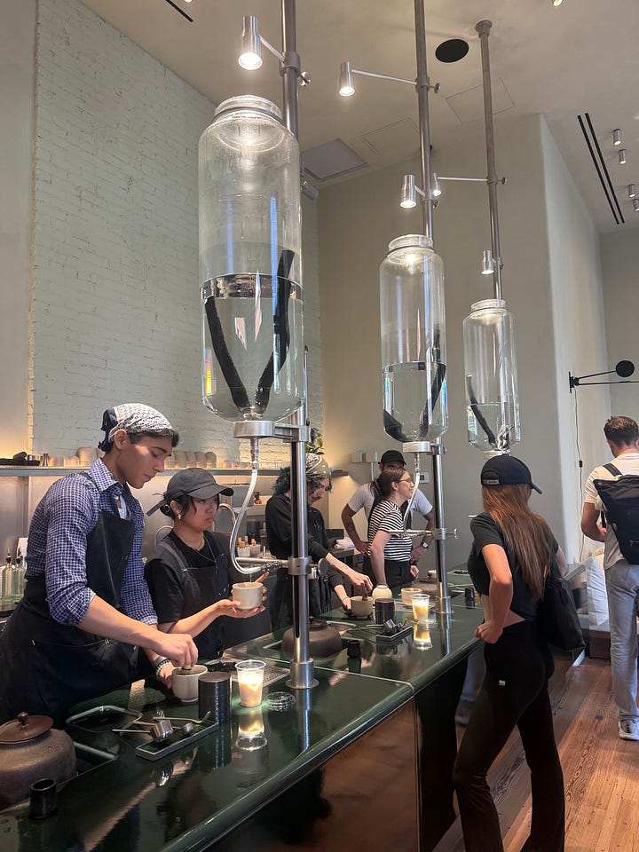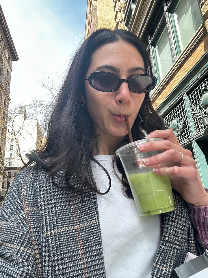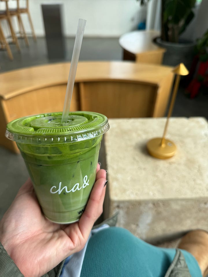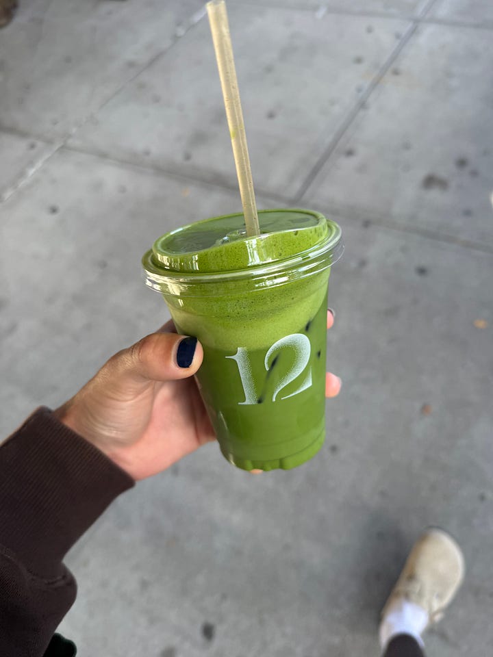 All of this to say that I have avoided caffeine for nearly my entire life due to increased sensitivity that could trigger my anxiety. Coffee dates with friends were limited to the very few coffee shops in NYC that can earnestly crank out a decaf without rolling their eyes at you. Otherwise, I was ordering some wack ass herbal tea that tasted like dandelions and I didn’t really love. Once I found out that matcha had “less caffeine”1 than coffee and that I could tolerate it and that shops selling it were proliferating around the city, it seemed I could finally rise to the occasion and meet my coffee-drinking friends where they were at.