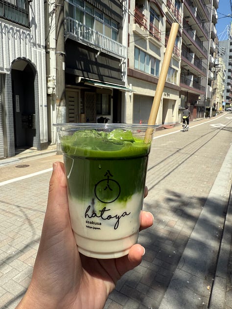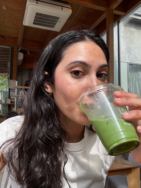 Sometimes I choose violence. What this looks like is drinking matcha on an empty stomach. And not a fruity little strawberry tiramisu iced hot bubble matcha. Give me the Uji-grade or else, no sweetness, just strong and bitter and green enough to punch me right in the throat. Whether it was serendipitous or utterly ill-fated for me to enter my matcha era right before I traveled to Japan remains up for debate. Even on these particular days, the ones where I’m tripping on caffeine and spinning out fully of my own accord, I can’t quite be certain.